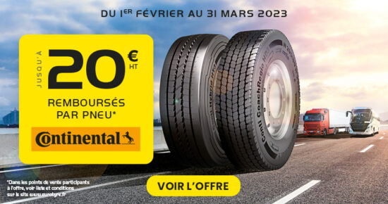 Du 1er Février au 31 Mars 2023 pour l’achat de 4 pneumatiques Poids Lourd Continental neufs été minimum, parmi les […]