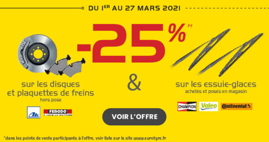 Il y a toujours une promo pneu intéressante avec Eurotyre ! Pneus pas cher pour un budget serré, cadeau exclusif, remboursement… notre réseau de garagistes tisse des partenariats avec les plus grandes marques.